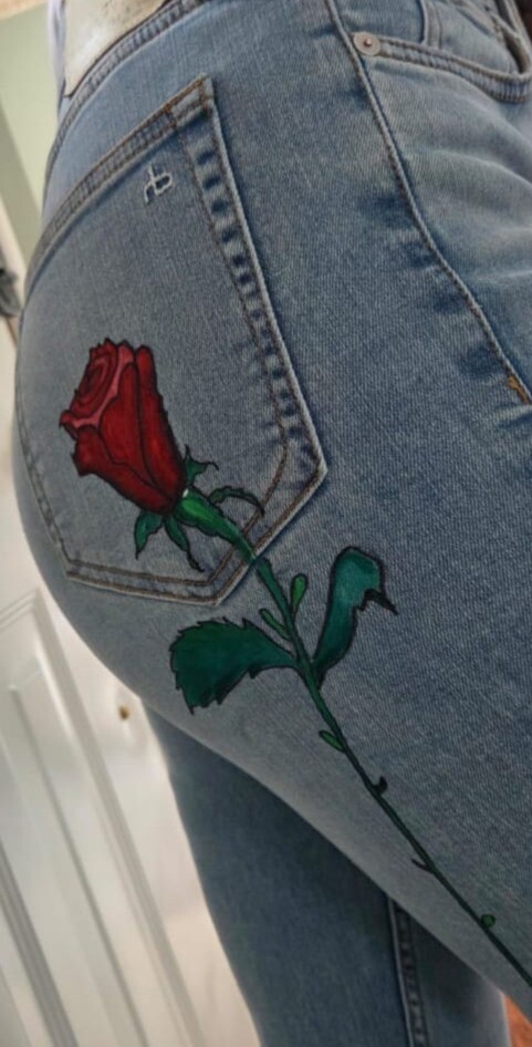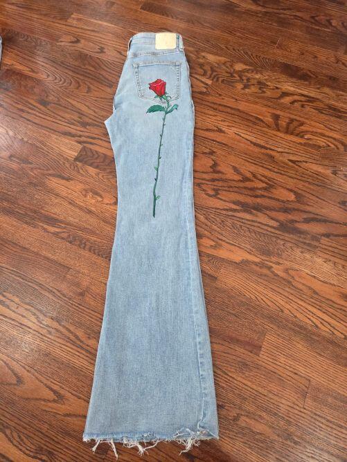 Slightly used Size 28 tall, High waist, Flared hand painted Jeans